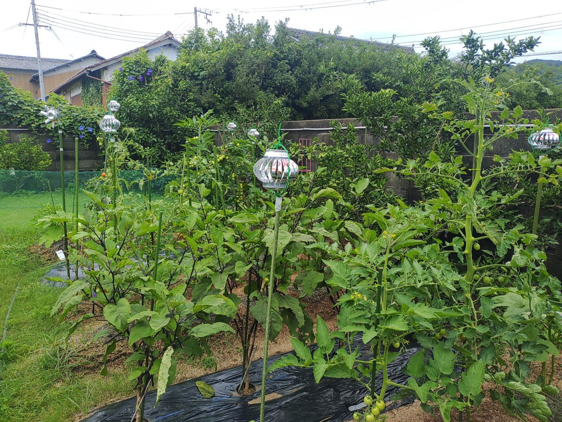 完熟直前に鳥に食べられてしまうので、アルミ缶風車を製作。鳥に食べられてしまうことがなくなり効果を実証。