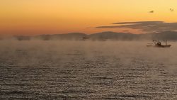 気象 気嵐(けあらし)たつ、幻想的な朝 朝の散歩に出かけると、海に気嵐がたっていました。今季初。冷え込んだ、風のない、穏やかな、晴れた朝です。ちょうど漁船も通りかかり、いつもより幻想的です。 2024.11.21 気象